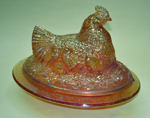 Original Sowerby Carnival Glass Covered Hen on Nest Dish |