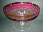 A flashed ruby glass comport that came with the jug that would date to around 1900. It has a clear glass foot & stem and a rough pontil mark. There is wear to the inside base and it has an air bubble on the rim that happened in the making otherwise the condition is fine with no chips cracks or repairs and measures 5 1/4 inches (13.3 cm) high by 8 inches (20.3 cm) diameter at the top. Price: AU$350.00