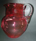 A Victorian ruby glass jug with a ground pontil & clear glass handle that would date to around 1900. In good condition with no chips, cracks or repairs it measures 6 1/2 inches (16.5 cm) high by a maximum of 5 inches (12.7 cm) diameter excluding the handle. Price: AU$350.00