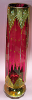 Bohemian Ruby Overlay Glass vase Hand Painted |