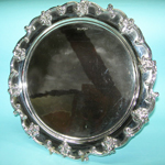 A Circular sterling silver tray by Walker & Hall and assayed in Sheffield with date letter mark for 1931. It weighs 28 oz (almost 800 grams) and apart from some surface marks from use it is in good condition. Price: AU$1195.00