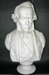 A parian ware bust of Sir Richard Cobden produced by Robinson & Leadbetter in 1866. For information on Sir Richard's life & achievements click here It is approximately 16 inches (40 cm high) and in good condition with no chips, cracks or repairs. There is a small amount of separation where the bust meets the soccle. Price: AU$895.00