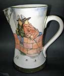 A Tudor shaped jug or pitcher decorated with a scene from the Gallant Fishers series introduced in 1913 and withdrawn by 1936. Pattern number D3680 featuring two fishermen sleeping. Price: AU$195.00 SOLD