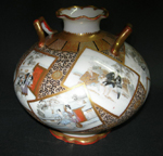 A delightful, signed Kutani, Japan vase profusely decorated all over with panels of garden & court scenes and the intervening spaces filled with hand painted designs of various form. Good condition. Circa 1910. Price: AU$595.00