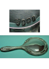 A sterling silver hand mirror with assay marks for Birmingham and date letter mark for 1916. Apart from some surface marks it is in good condition and the mirror is in good order. It measures 11 inches (28 cm) long and 6 inches (15 cm) diameter. Price: AU$175.00