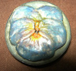 I have only ever seen 2 of these brooches by Mary Ann MacDonald and both were dated 1941. She was a Harvey School student and a prolific potter. This pansy brooch is mounted in sterling silver and is 1 3/8 inches (2.5 cm) diameter. It is in excellent condition and the pin, hinge & clasp are in good order. Price: AU$265.00