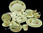 This is a Royal Doulton dinner set that I am selling by individual pieces. There was 6 of everything including dinner and entree plates, cereal and dessert bowls, a tureen, platter, some footed egg cups and 6 cups, saucers & plates. Most pieces are in good condition apart from the usual glaze crazing that occurs in our climate. Selling fast Prices range from $20 to $95.00