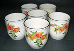There are 6 of these eggcups that I am selling as a group in the Royal Doulton Rosslyn pattern D5399. In good condition with no chips, cracks or repairs. Price: AU$75.00 for 6 SOLD |