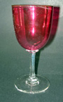 A Victorian single ruby wine glass with a clear glass stem & foot that came from the same estate as the jug. In good condition with no chips, cracks or repairs it measures 5 inches (12.7 cm) high and 2 1/4 inches (5.7 cm) diameter at the top of the bowl. Price: AU$45.00
